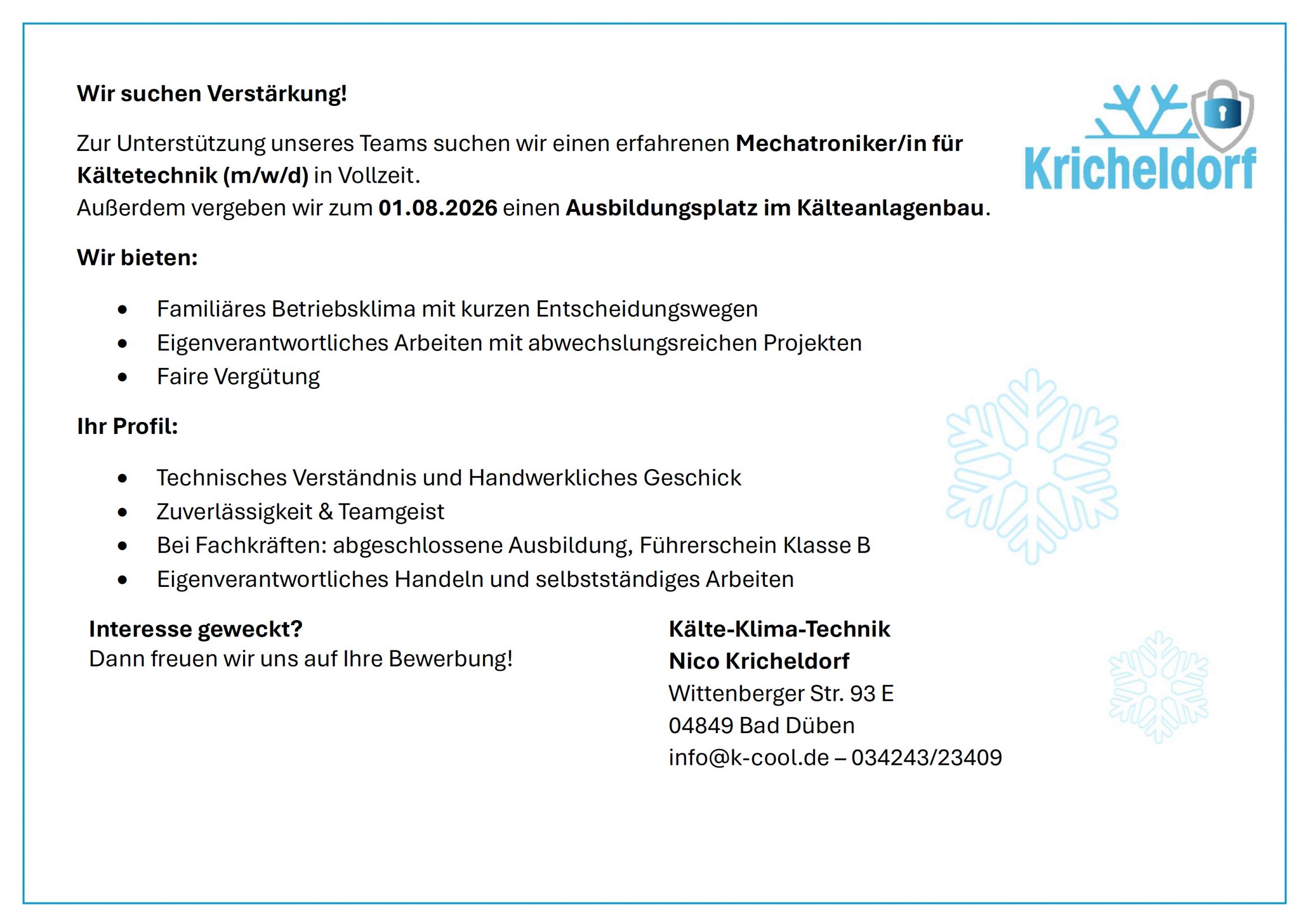 Von Kälteanlagen, über Wärmepumpen bis hin zur Klimasystemen- Kricheldorf kennt die Industrie! Und Sie bald ihn…